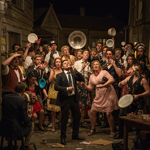 - (Historical) A noisy mock serenade performed by a group of people to celebrate a marriage or mock an unpopular person.