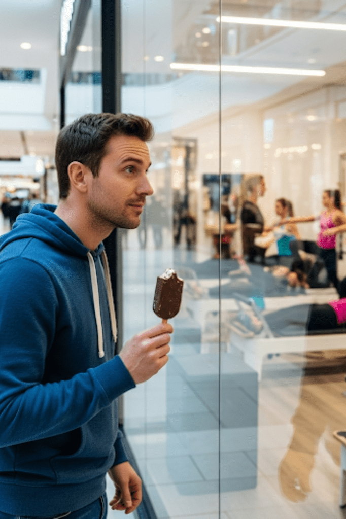 I’ll share a tale of a scab that would stand outside of the Teapot Plank and Pilates fitness center in the mall watching the ladies through the window. As a former contestant of the show American Gladiator he understood how this training would leave them sore. When he finished his Dove velvet chocolate ice cream bar he would search for the work union employees weren’t doing for $35 an hour. [70]